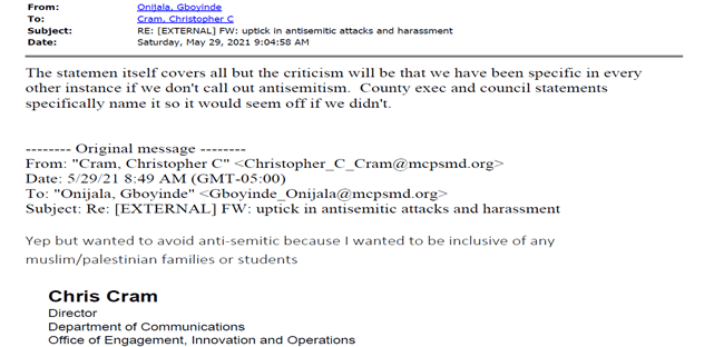 Documents highlighting MCPS Statement Conflating Criticism of Israel as Anti-Semitic Share this: Click to share on X (Opens in new window) X Like Loading...