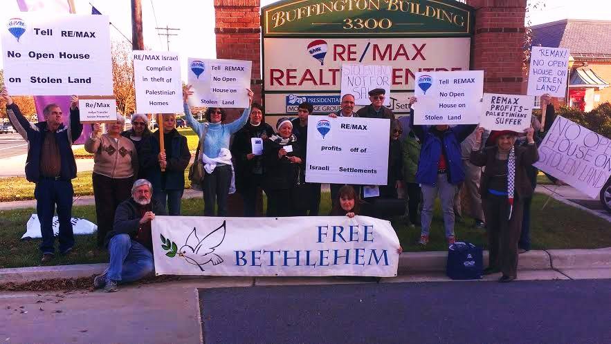 Activists hold a protest at the ReMax in Olney because Remax sells Jewish-only properties in Israeli Settlements.