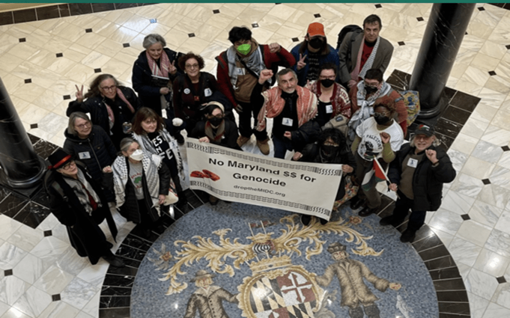 Montgomery County gives an annual grant to the Maryland Israel Development Center (MIDC) which brings in weapons manufacturers engaged in war crimes. Two of these companies are part of the Israeli government itself. See here for a 3-minute video.